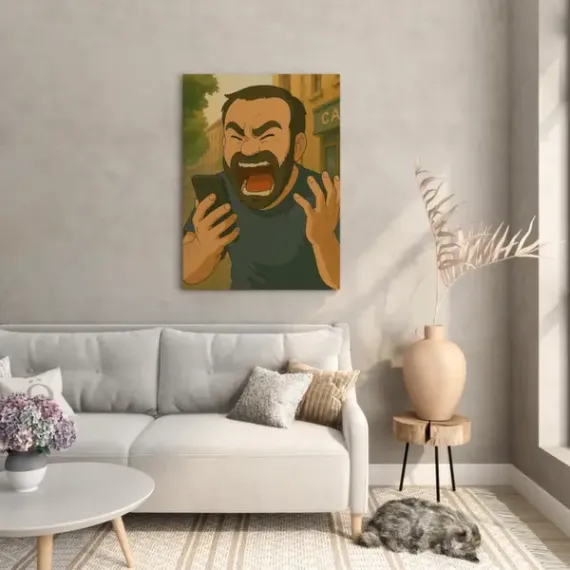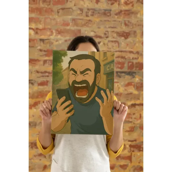 Esta imagen —explosiva, real y divertidísima— captura el espíritu del enfado urbano del siglo XXI. Y en Regalio, creemos que también merece un lugar en la pared. Porque no todo lo que se imprime tiene que ser solemne: hay momentos que, al colgarse, arrancan sonrisas y se vuelven memorables. Por eso transformamos tu escena en una foto lienzo de calidad, un producto personalizado con alma… y mucho carácter.