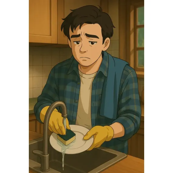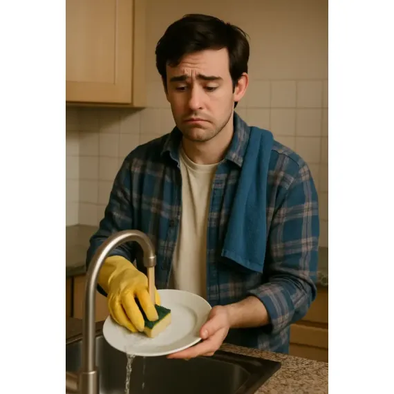Hay gestos heroicos que no salen en las películas: ponerse los guantes, abrir el grifo y encarar una pila de platos como si fuera una misión de vida o muerte. Esta imagen, cargada de resignación tierna, resume tantas escenas reales de la vida en pareja, en familia o en soledad… que no pueden quedarse olvidadas.