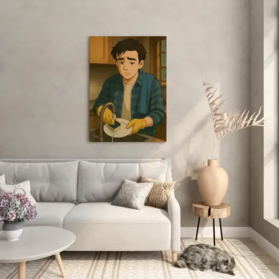 En Regalio creemos que lo cotidiano merece un lugar en la pared. Esta foto lienzo transforma el esfuerzo más sencillo en una obra con historia. ¿Por qué no imprimir esos momentos que arrancan sonrisas y nos recuerdan que el amor —a veces— es fregar los platos sin que te lo pidan?