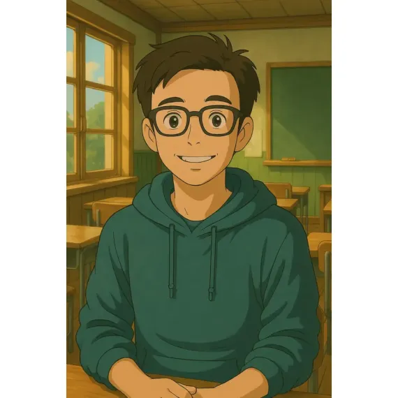 A veces basta una sonrisa para recordar una etapa entera. Este joven, con sudadera y gafas, está en su sitio: la escuela, la luz de la tarde, la mirada limpia de quien aún no tiene prisa.