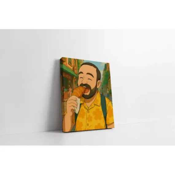 En Regalio, creemos que los momentos verdaderamente memorables no siempre son solemnes. A veces están en la calle, con un cruasán en la mano, el sol en la cara y ninguna prisa. Esta escena es ideal para imprimir como foto lienzo, un producto personalizado que huele a alegría y espontaneidad.