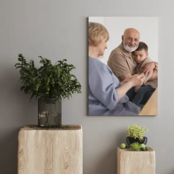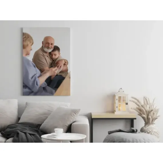 En Regalio, convertimos esos gestos sinceros en arte. Esta foto lienzo, basada en una imagen real de nuestros clientes, es un homenaje a la ternura compartida entre generaciones. Es el tipo de producto personalizado que no solo decora, sino que cuenta una historia.