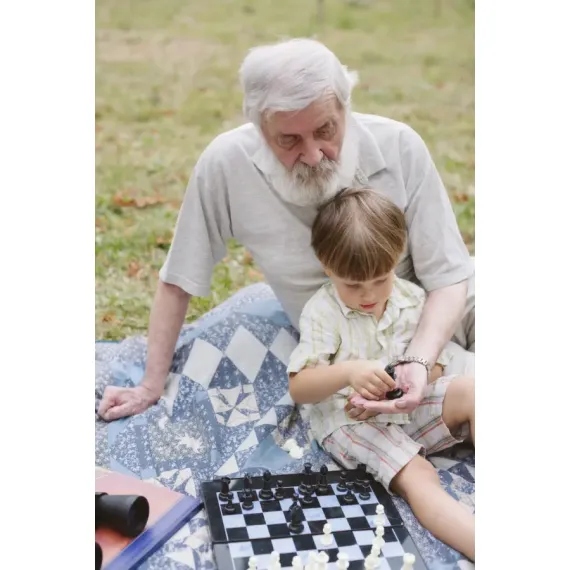 Hay cosas que no se enseñan con palabras. Se aprenden en una tarde de verano, sobre una manta algo deshilachada, con un tablero de ajedrez entre generaciones. El abuelo no corrige: acompaña. El niño no pregunta: observa. Y entre las manos, una torre negra que ya no es solo una pieza del juego, sino un legado silencioso.