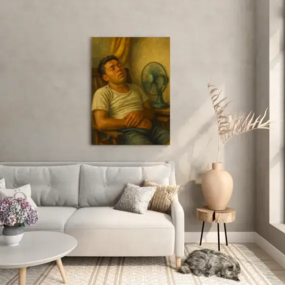 Este producto personalizado es mucho más que un cuadro: es un homenaje a los héroes anónimos del descanso. A ese padre, abuelo, tío o amigo que ha hecho del arte de dormir a mediodía una religión. Convertimos tu foto en un foto lienzo con texturas, luz y alma, para que cada siesta cuente su historia.