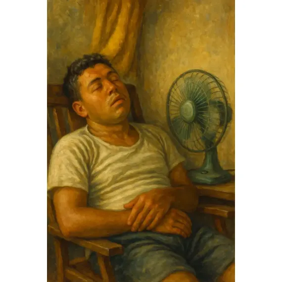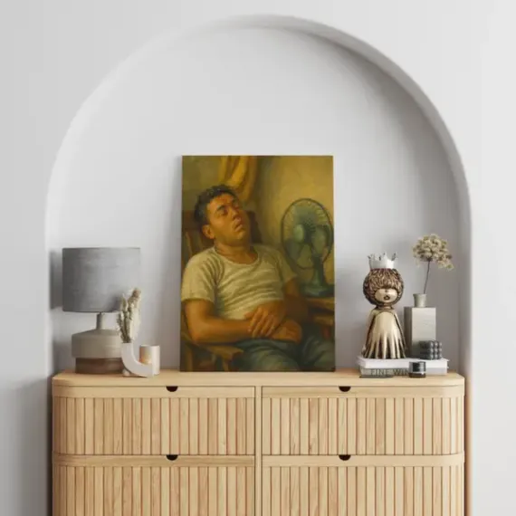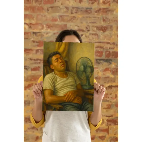 Ideal como regalo original de cumpleaños, o simplemente para arrancar sonrisas sinceras cada vez que alguien pase por el salón. Porque no hay nada más español —y más universal— que dormir con la ventana abierta y el ventilador encendido.