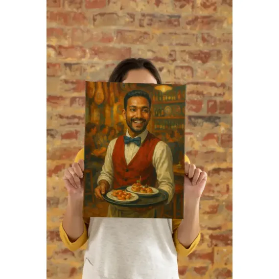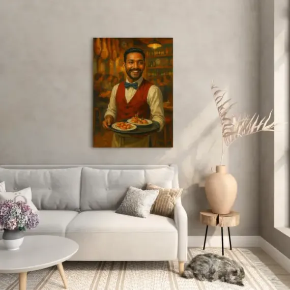 Imagina este foto lienzo colgado en la pared de tu cocina, o como regalo original para ese amigo que ama su trabajo, su gente o su taberna. Perfecto para un cumpleaños o simplemente para decir: “Mira qué bien se te ve cuando haces lo que amas”.