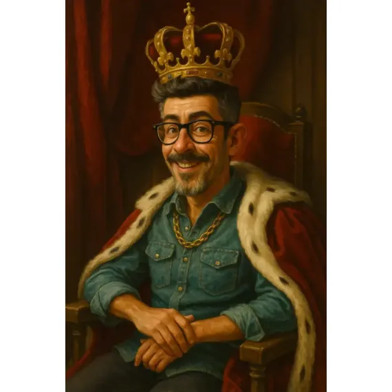 Hay personas que no necesitan castillo para ser reyes. Basta con una buena sonrisa, unas gafas que lo ven todo y esa corona invisible que los demás sentimos aunque no la lleven puesta. Aunque en este caso... ¡la lleva puesta, y con todo el arte!