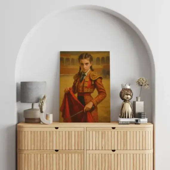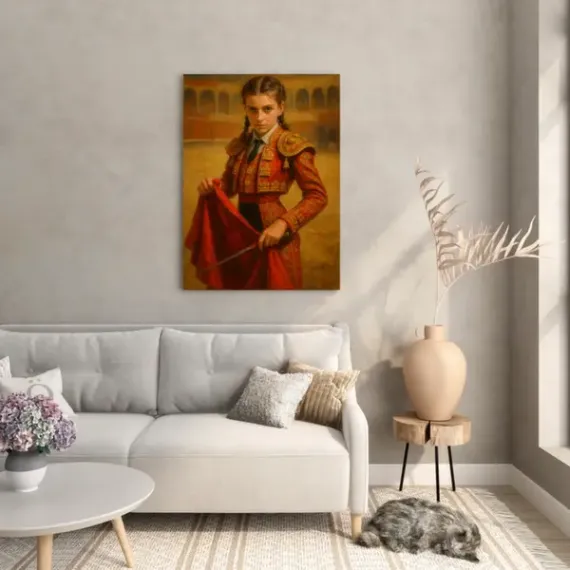 Imagina este cuadro en tu salón, con su fuerza callada, su elegancia clásica y ese brillo de ojos que no necesita explicación. Nosotros lo imprimimos con cuidado, tú lo conviertes en legado.