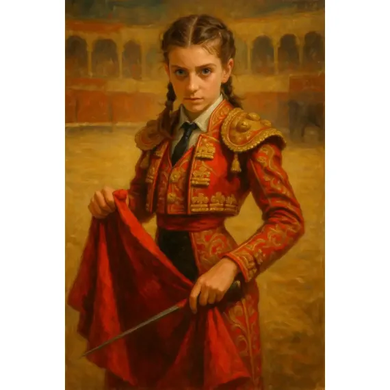 Hay miradas que no se olvidan. Como la de esta joven torera que, con trenza y traje de luces, sostiene el capote como si sujetara el mundo entero. Esa determinación, esa mezcla de inocencia y valor, merecía algo más que quedarse en una galería del móvil.